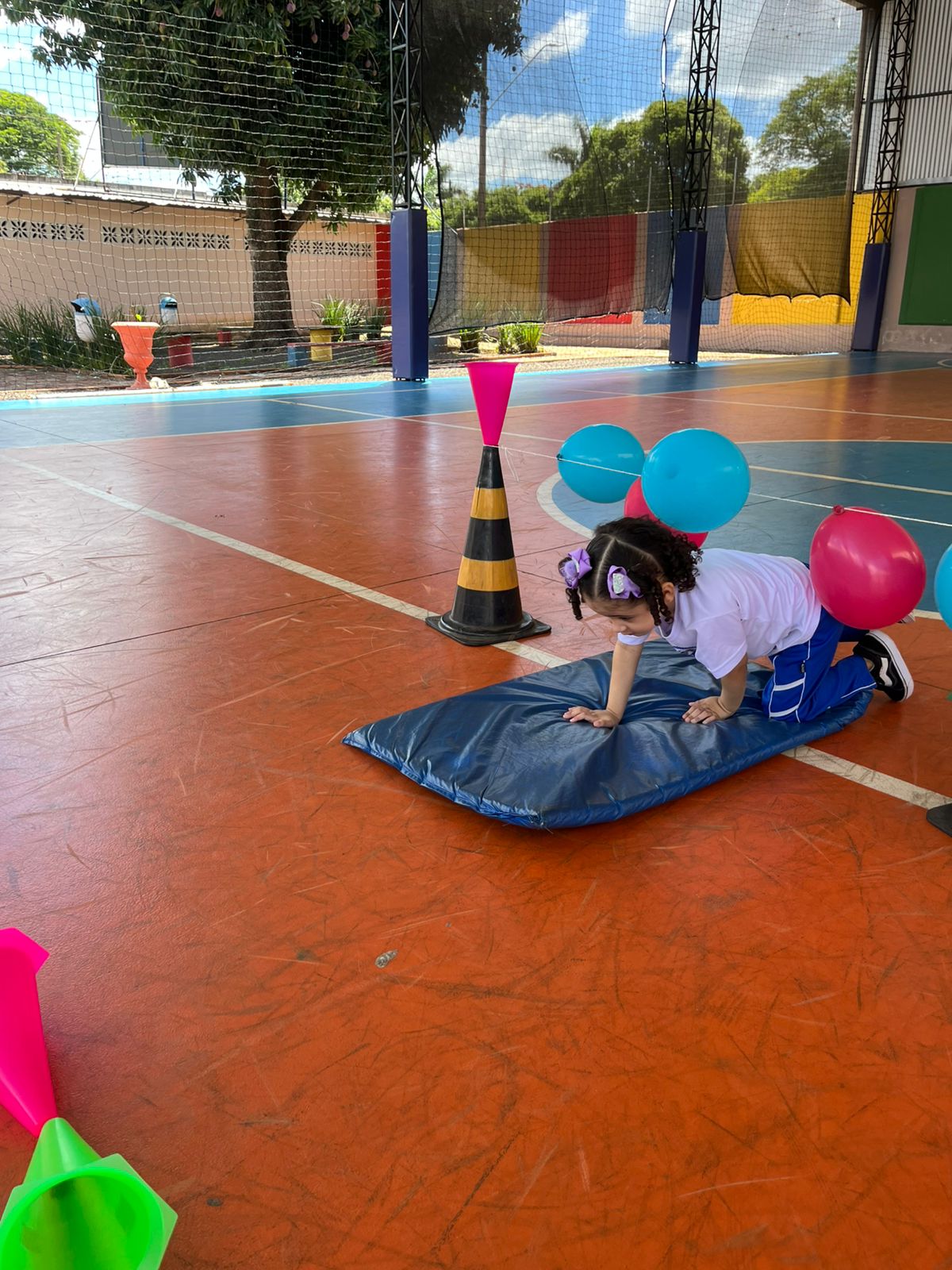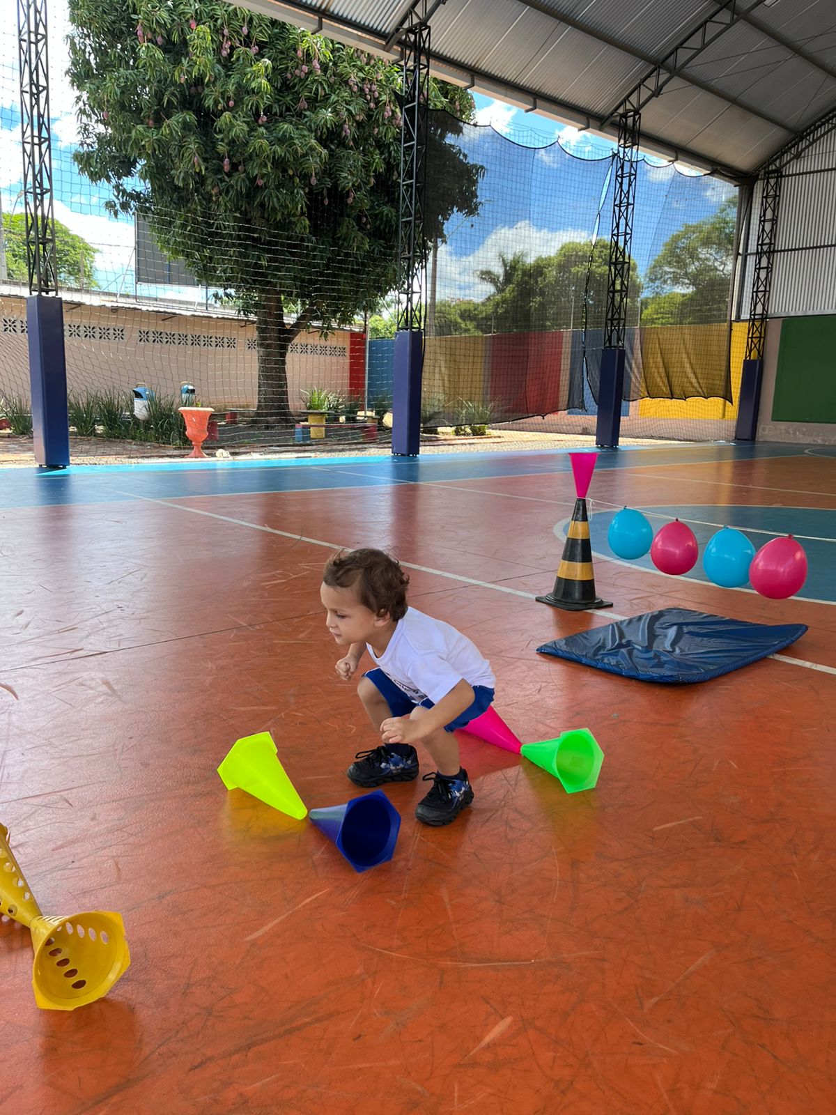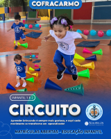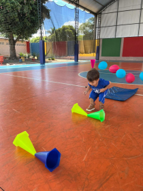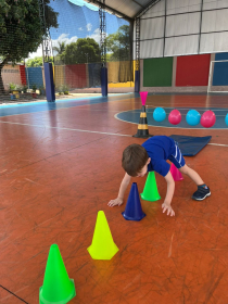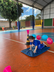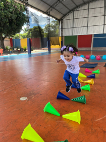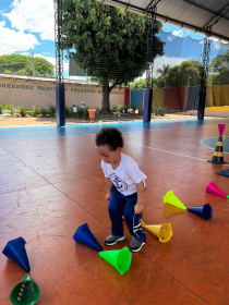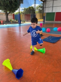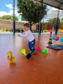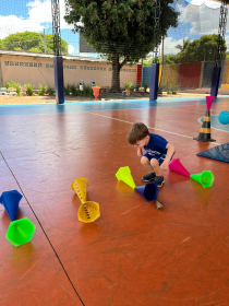 Na aula de Educação Física com a Professora Andressa, as turminhas do Infantil 1 e 2 se aventuraram em um circuito cheio de descobertas!