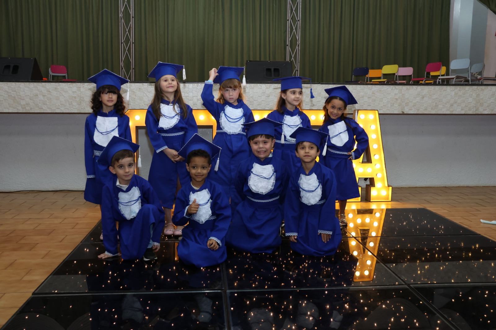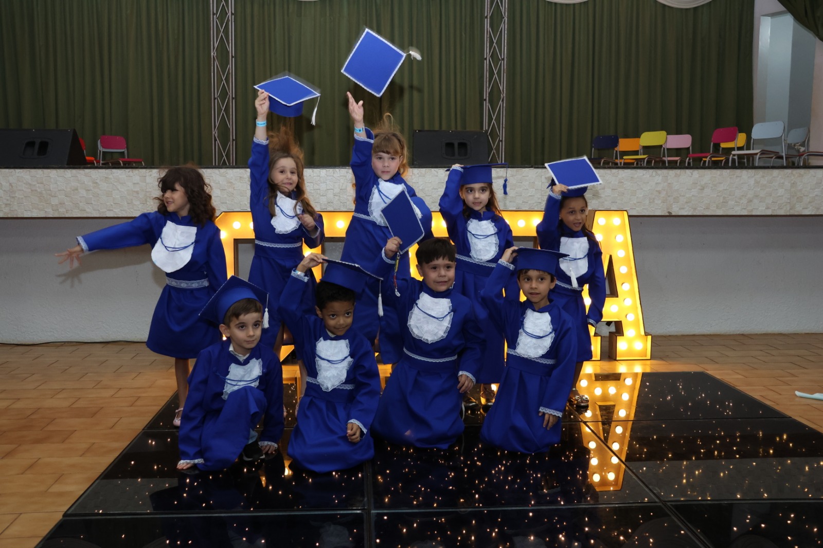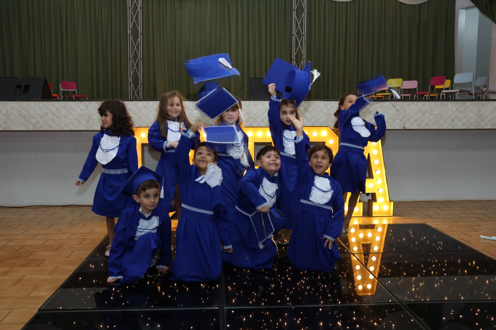 Celebramos um capítulo cheio de descobertas, cores e aprendizados. Nossos pequenos cresceram entre sorrisos, brincadeiras e passos corajosos rumo ao conhecimento. Que esta formatura seja apenas o início de muitos sonhos que ainda vão florescer. Parabéns, pequenos formandos! O futuro começa com alegria, imaginação e coração cheio de esperança.