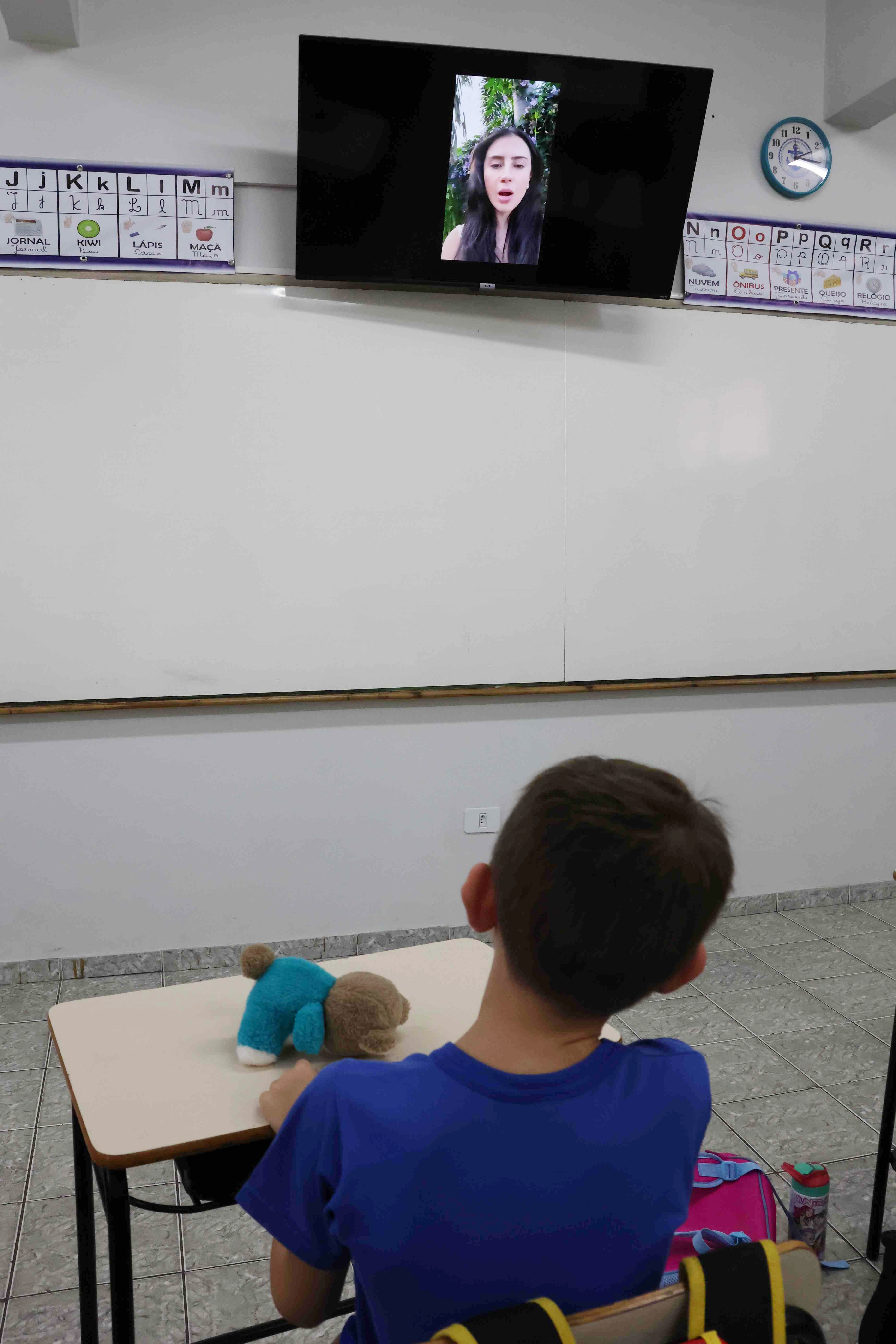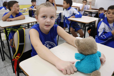 Os alunos do 2EF2, junto com a professora Mayara e as