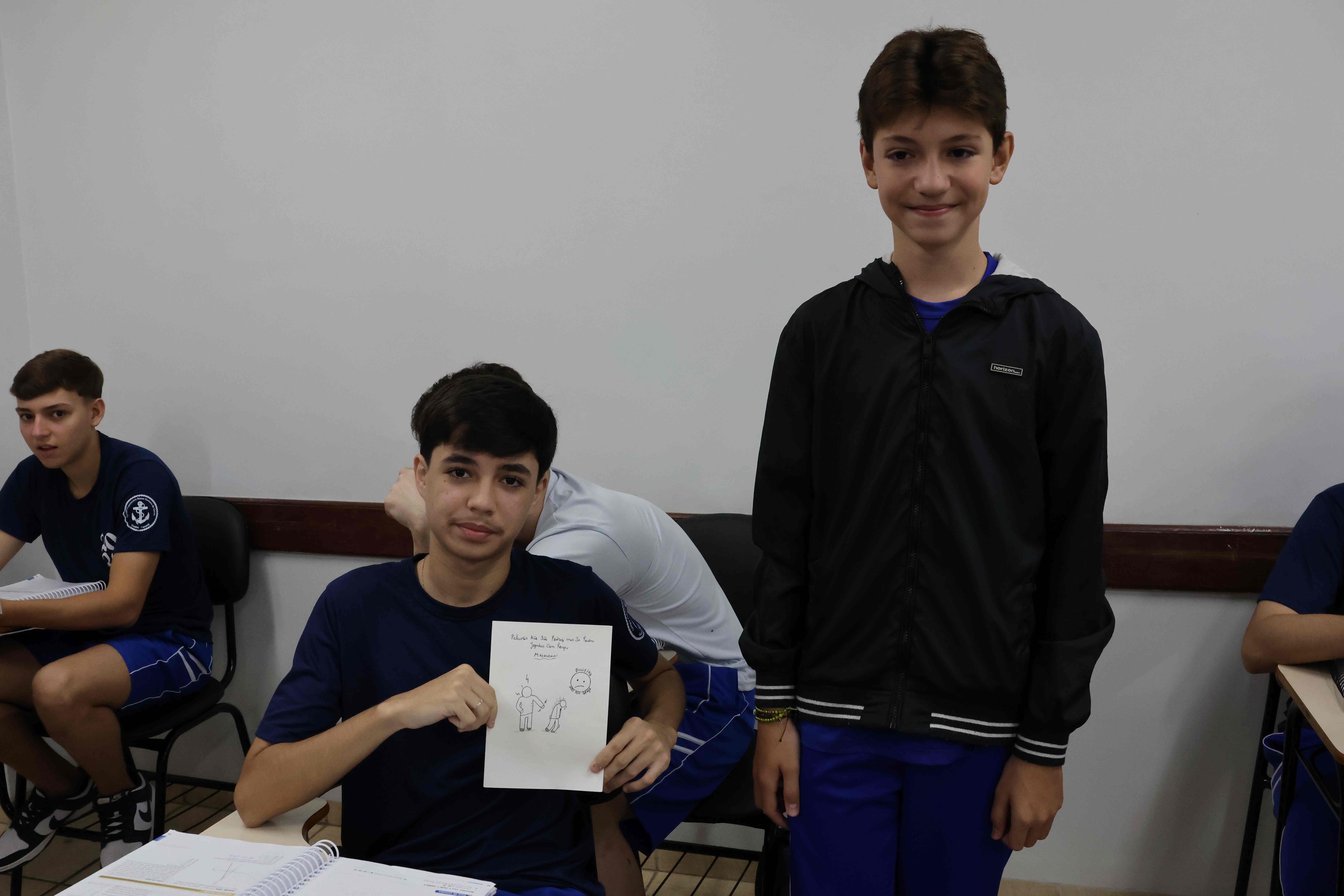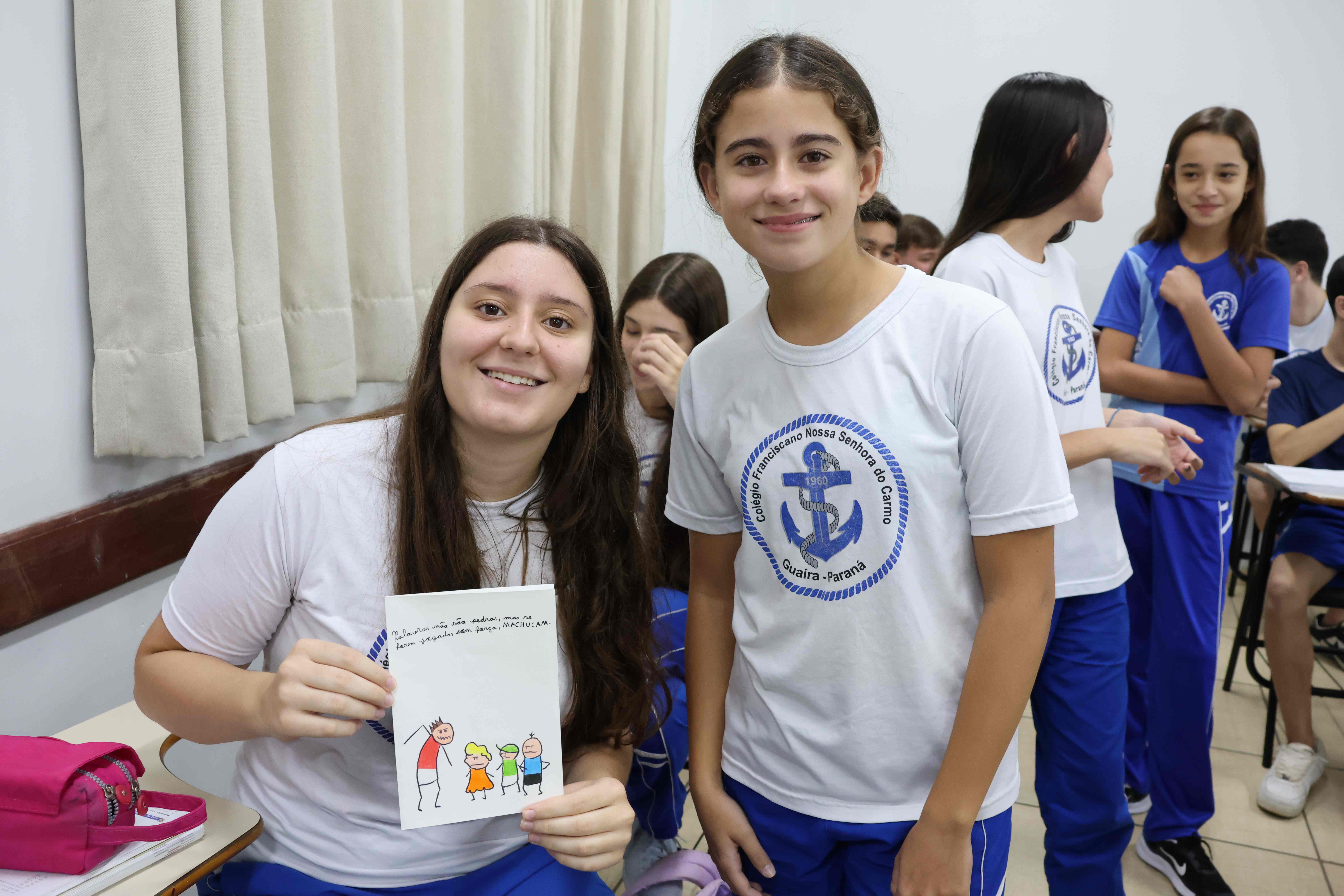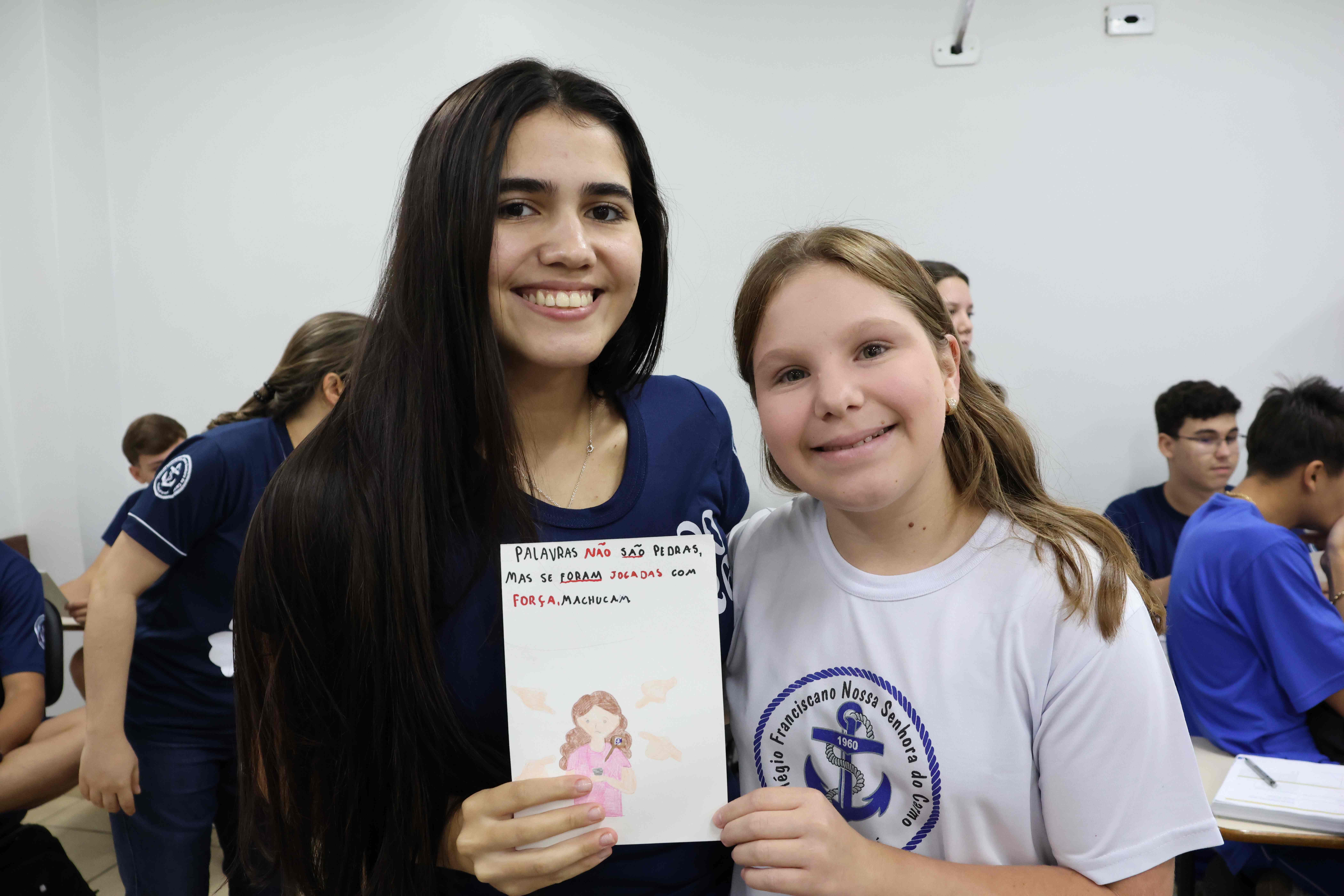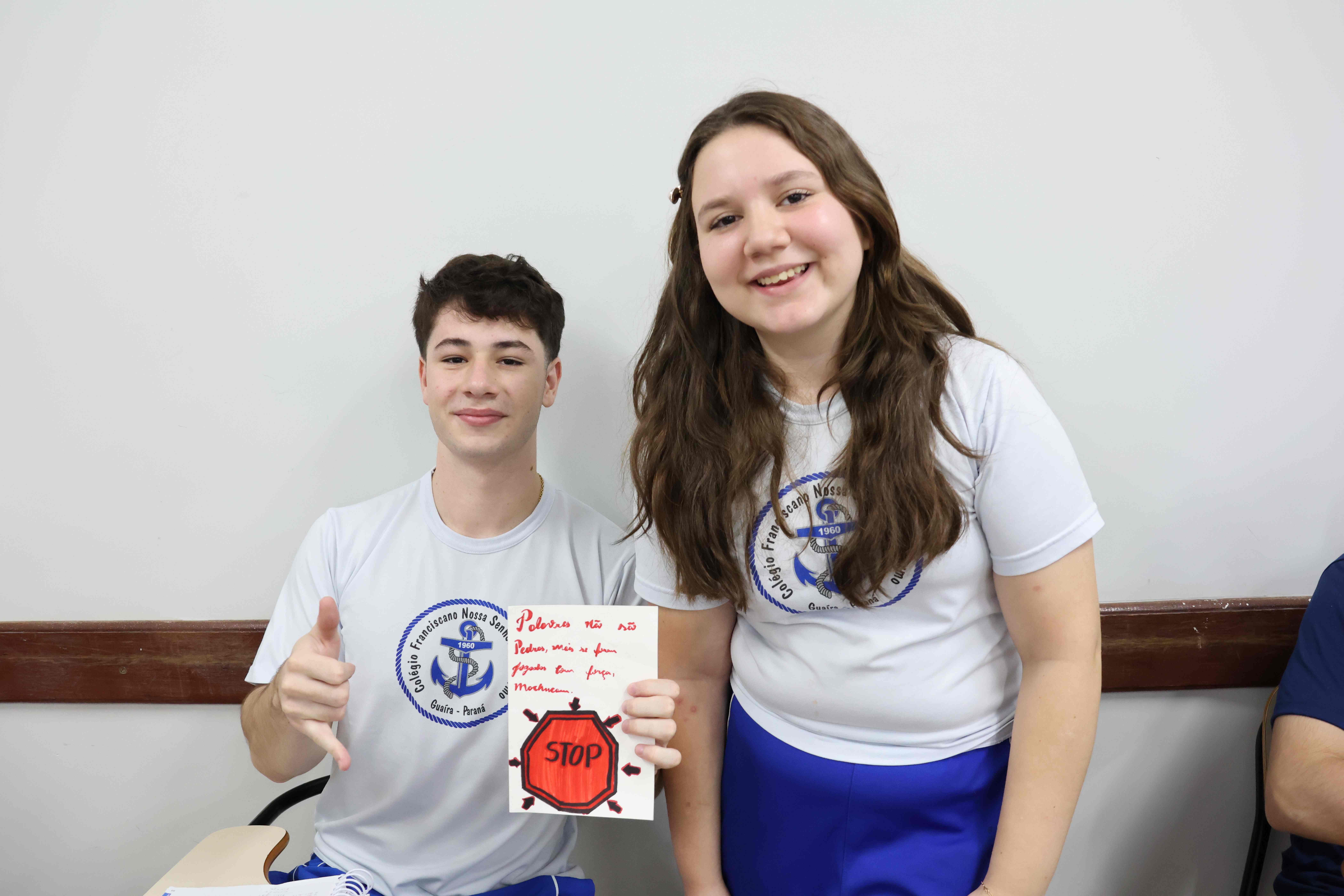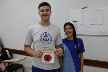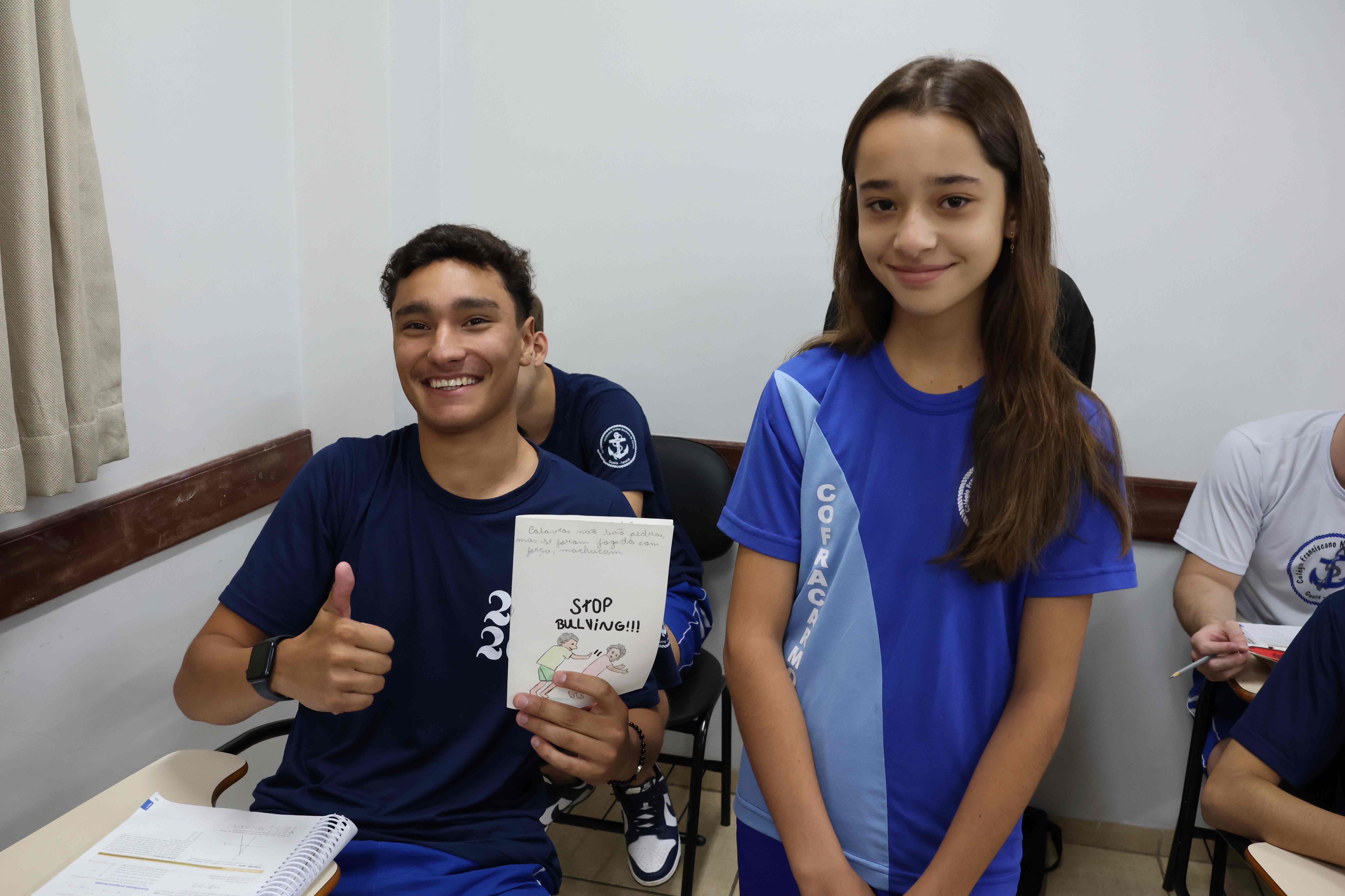 Proposta: Os alunos do Ensino fundamental II, após uma aula expositiva sobre o Bullying no ambiente escolar, prepararam um bilhete informativo contra o Bullying. Realizaram a pesquisa no laboratório de informática identificando o significado, consequências e a lei que fundamenta o Bullying no Brasil. Após o preparo, realizaram a entrega para os alunos do ensino médio!