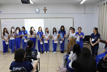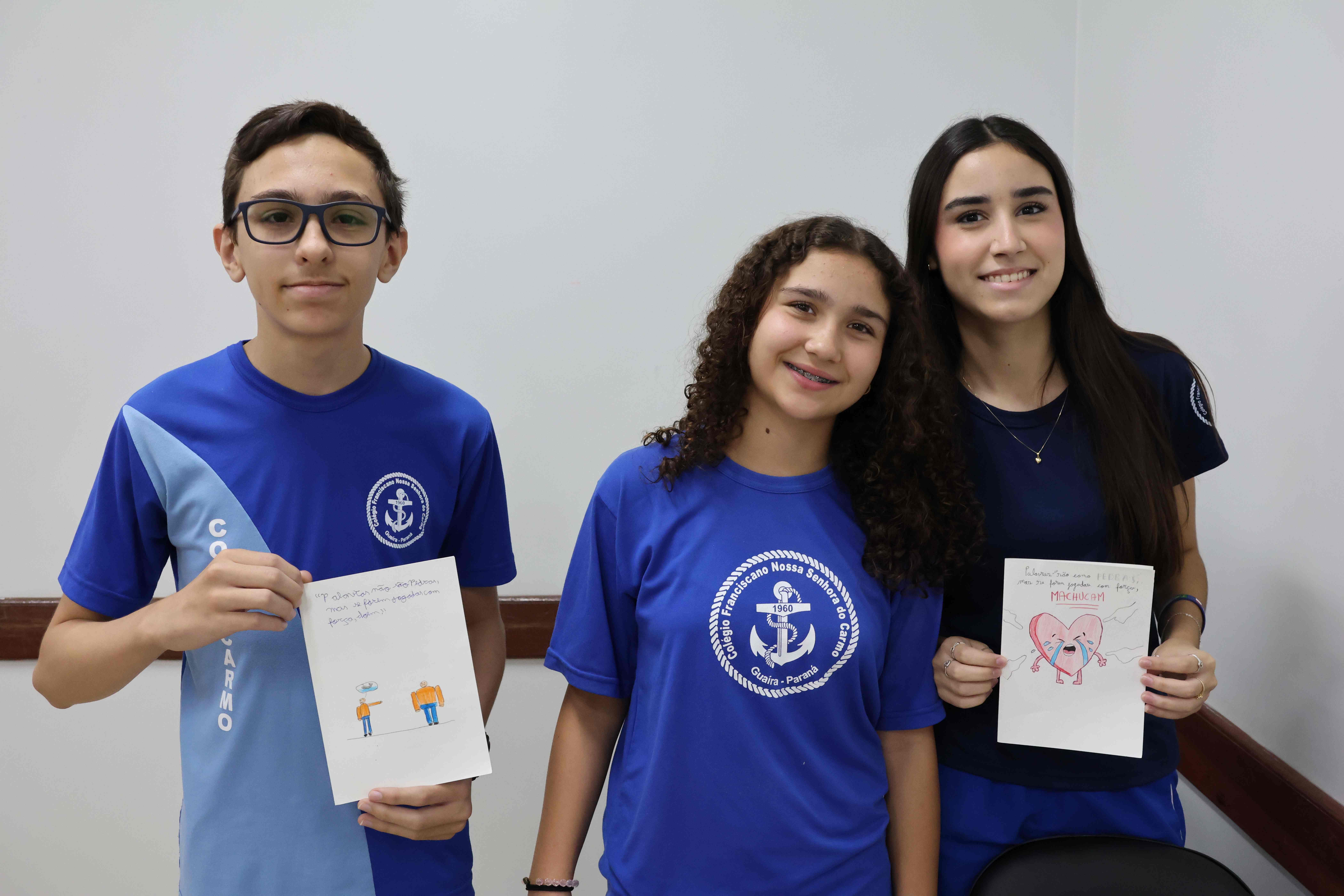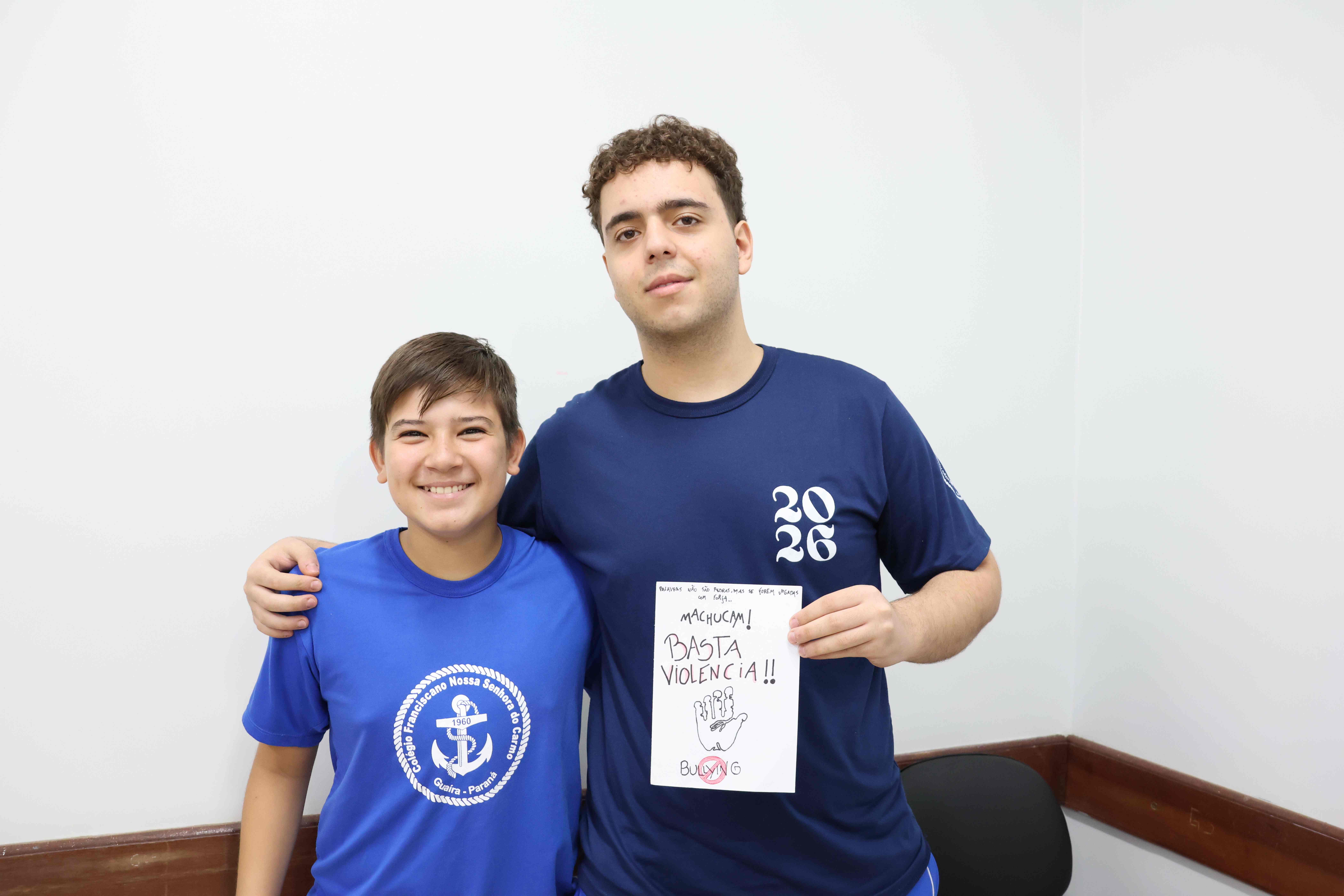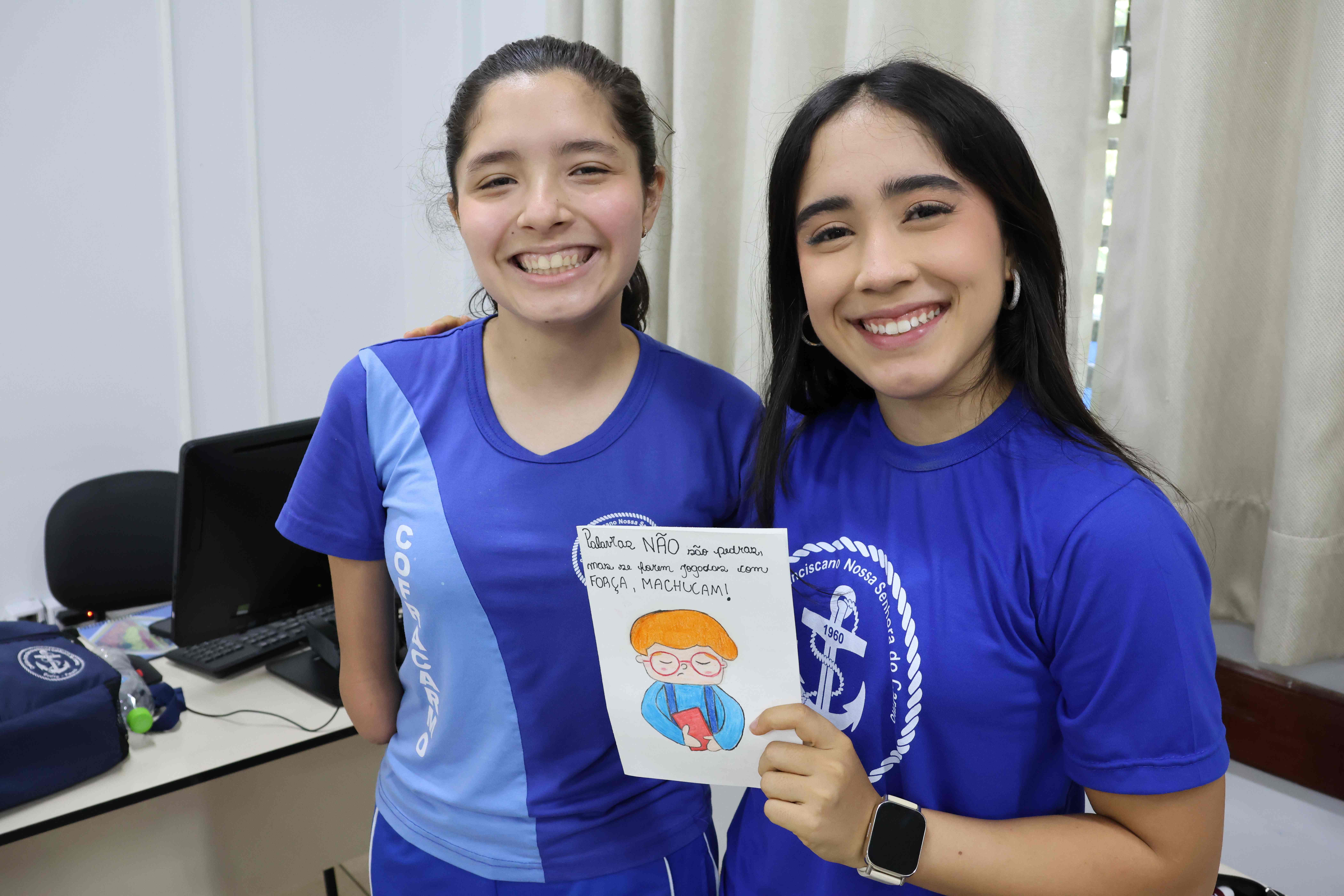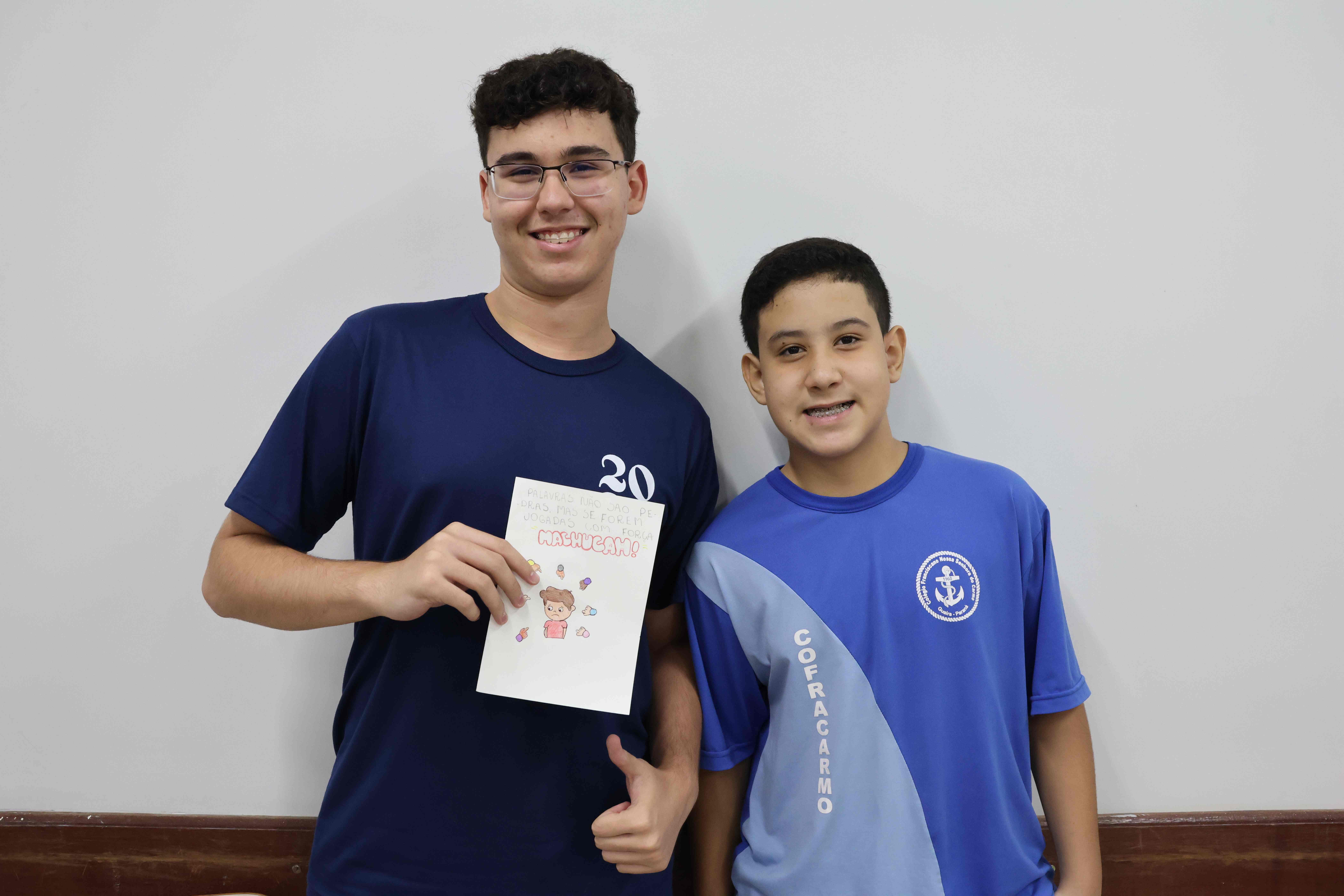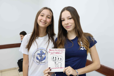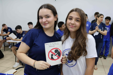 Proposta: Os alunos do Ensino fundamental II, após uma aula expositiva sobre o Bullying no ambiente escolar, prepararam um bilhete informativo contra o Bullying. Realizaram a pesquisa no laboratório de informática identificando o significado, consequências e a lei que fundamenta o Bullying no Brasil. Após o preparo, realizaram a entrega para os alunos do ensino médio!