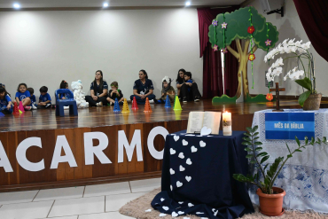 Celebramos o encerramento do Mês da Bíblia, tempo em que aprendemos que a Palavra de Deus é uma luz que guia nossos passos, assim os alunos da Educação Infantil 3 e 4, com suas professoras Cleide, Bruna, Aline, Taís e Taynara, dramatizaram duas belas parábolas.