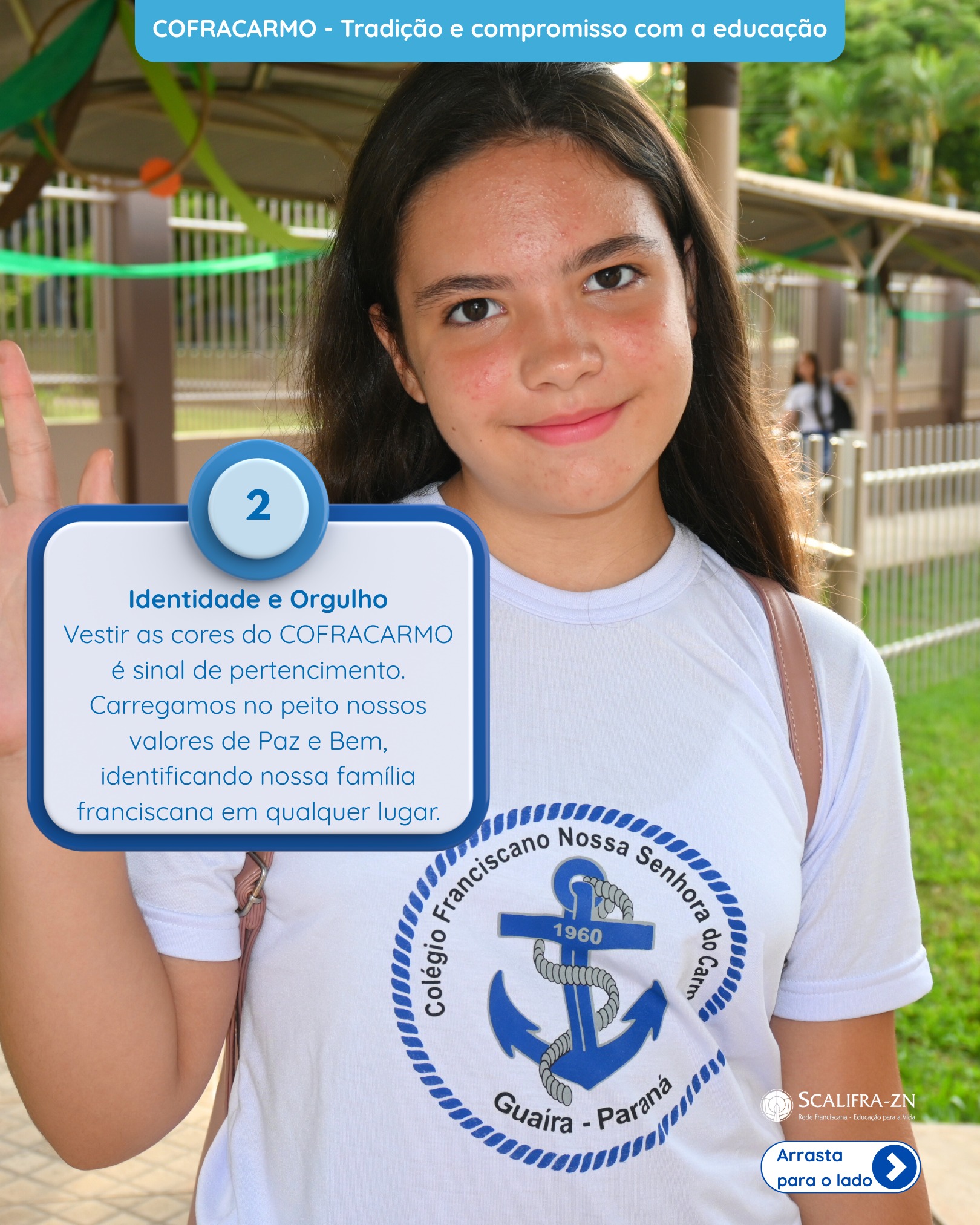 Muito mais que uma vestimenta, o nosso uniforme é o símbolo de uma comunidade unida pelos valores franciscanos. ️✨ Ao usá-lo com orgulho, nossos alunos reafirmam diariamente seu compromisso com a igualdade, a segurança e a educação de excelência.
