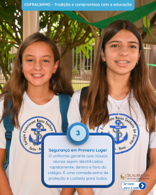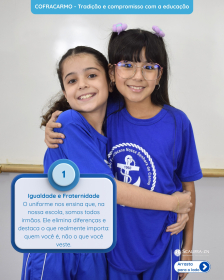 O uniforme nos ensina que, na nossa escola, somos todos irmãos. Ele elimina diferenças e destaca o que realmente importa: quem você é, não o que você veste.